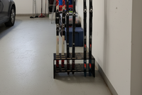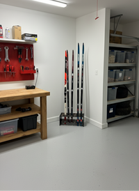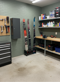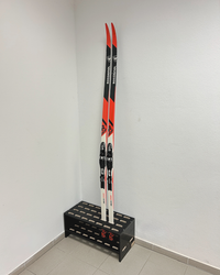 - Rummeligt: Hver åbning er beregnet til ét par langrendsski. Stativet er velegnet til 14 par langrendsski. Den mest almindelige skibredde ved hælen er 40–48 mm, derfor passer de nemt i åbningen på 55 x 16 mm.
